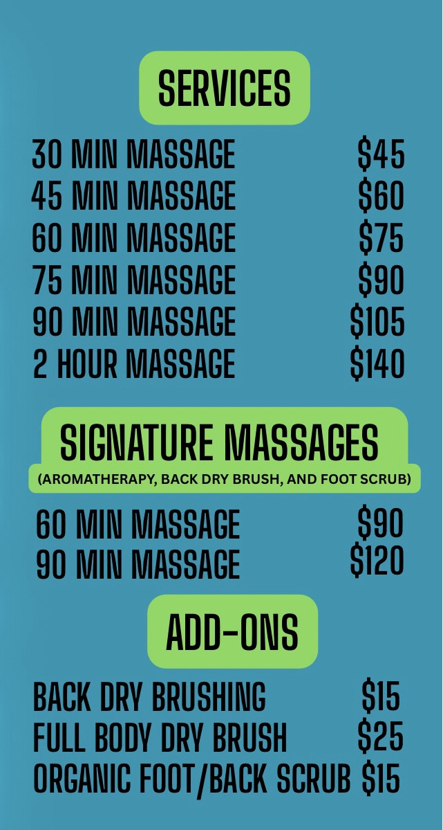 We are glad to offer anything from a relaxing ladies night to a quick refresher for you and your friends. Give us a call for details.
